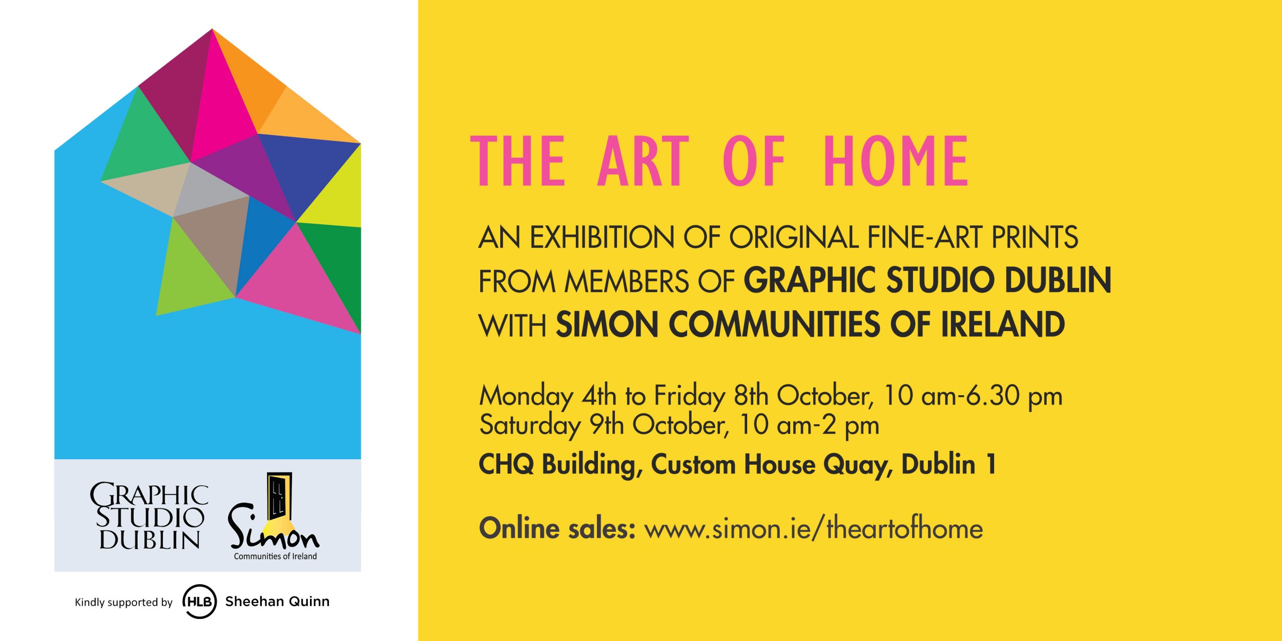 41artists have reunited and produced prints responding to the theme of ‘Home’ in support of the Simon Communities of Ireland. The Art of Home Exhibition is a collaboration between the Simon Communities of Ireland and Graphic Studio Dublin supported by HLB Sheehan Quinn and takes place from the 4th to the 9th of Octoberat CHQ Dublin.
